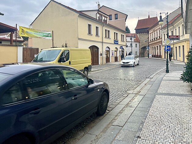 Žatecká ulice v Lounech bude nově jednosměrná. Tudy se bude do historického centra vjíždět. (prosinec 2024)