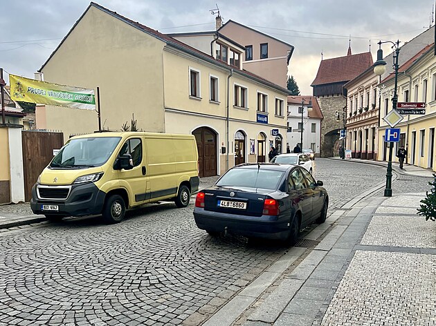 Žatecká ulice v Lounech bude nově jednosměrná. Tudy se bude do historického centra vjíždět. (prosinec 2024)