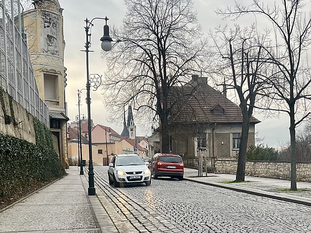 Ulice Hilbertova bude nově jednosměrná, z centra Loun se bude odsud vyjíždět. (prosinec 2024)