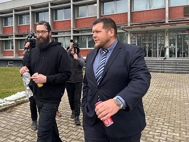 Jiří Lobotka v doprovodu svého advokáta opouští budovu Krajského soudu v Ústí nad Labem. Po více než roce a půl ve vazbě se dostal na svobodu. (24. ledna 2025)