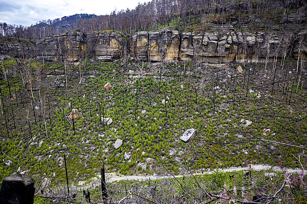 České Švýcarsko, výročí dvou let od požáru. Gabrielina stezka je kvůli napadanému dříví zavřená. V parku jsou však otevřeny i jiné stezky. (23. července 2024)