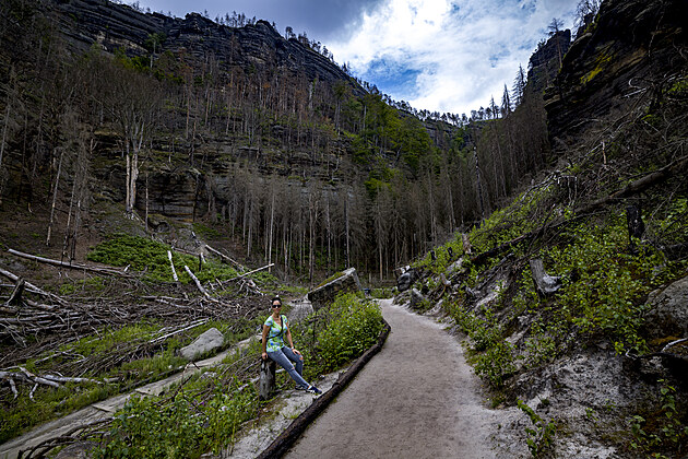 České Švýcarsko, výročí dvou let od požáru. Gabrielina stezka je kvůli napadanému dříví zavřená. V parku jsou však otevřeny i jiné stezky. (23. července 2024)
