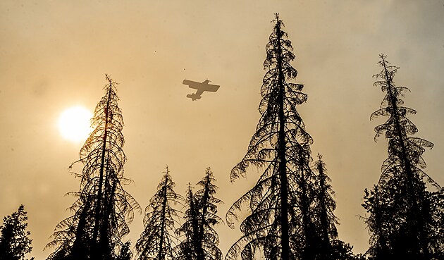 Požár v Národním parku České Švýcarsko. Hašení požárů národního parku je stále v plném proudu. Nasazená je veškerá technika. (28. července 2022)