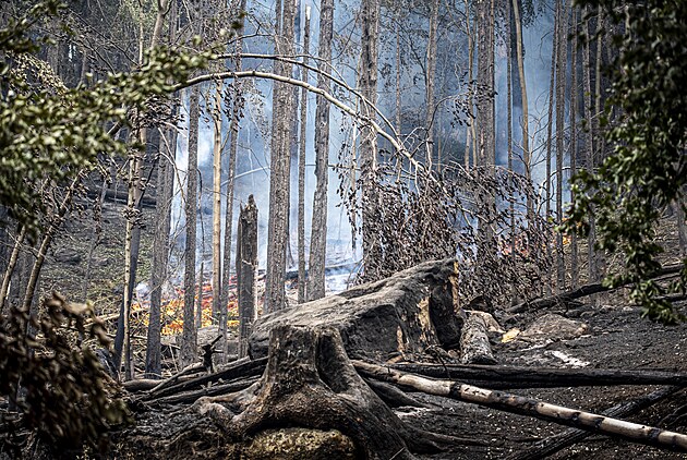 Hašení požárů národního parku je stále v plném proudu. Nasazená je veškerá technika. (27. července 2022)