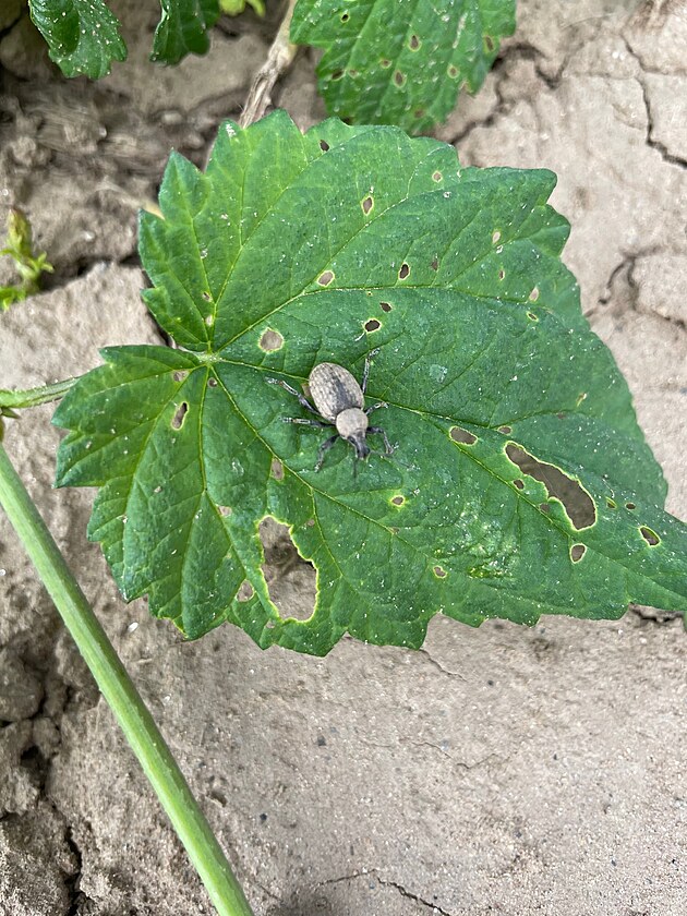 Škůdcem, který napadá chmel, může být i lalokonosec libečkový.