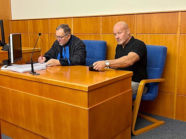 Obžalovaný Jaroslav Lecjaks (vpravo) v jednací síni Okresního soudu v Chomutově (15. října 2024)