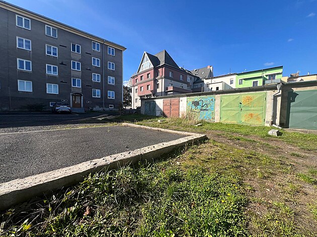 Okresní soud v Chomutově rozplétá sousedský spor o příjezdovou cestu k těmto garážím. (říjen 2024)