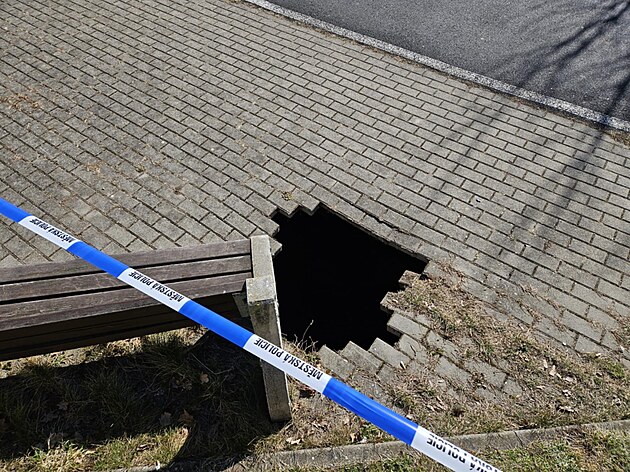 V Chomutově se propadl terén na sportovišti Domovinka. (19. března 2025)