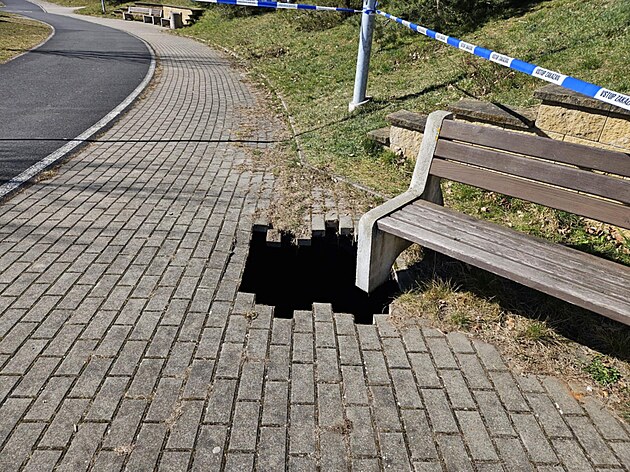V Chomutově se propadl terén na sportovišti Domovinka. (19. března 2025)