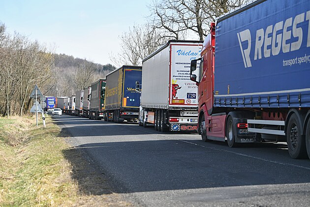 Na dálnici D8 jsou v obou směrech zavřené tunely před hranicí s Německem. Kamiony i další vozy tak jezdí přes hory na Ústecku a Teplicku po objížďkách. Všude se tvoří kolony. (2. dubna 2025)