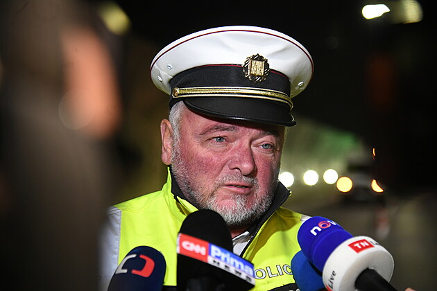 V tunelech Panenská a Libouchec na dálnici D8 u Ústí nad Labem technici provedli požární zkoušky. Na snímku šéf dopravní policie Ústeckého kraje Jiří Ušák. (7. října 2025)