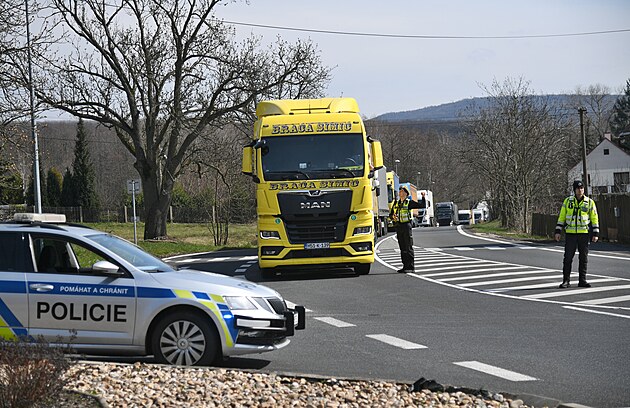 Na dálnici D8 jsou v obou směrech zavřené tunely před hranicí s Německem. Kamiony a další vozy se tak valí přes hory na Ústecku a Teplicku po objížďkách. (2. dubna 2025)