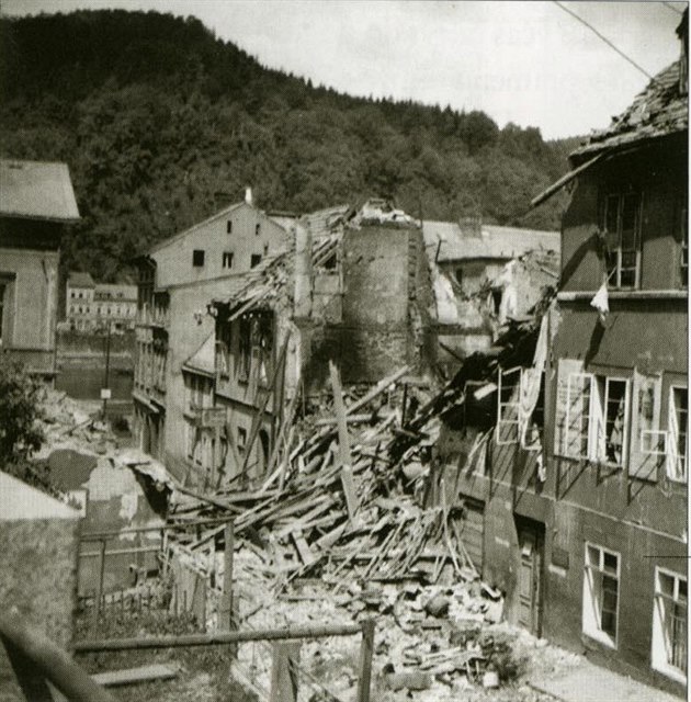 V domě na dolním konci Brückengasse, dnešní Tyršovy ulice, zahynulo po zásahu bomby několik lidí. V těchto místech později stál Atlantik, nyní je tu knihovna.