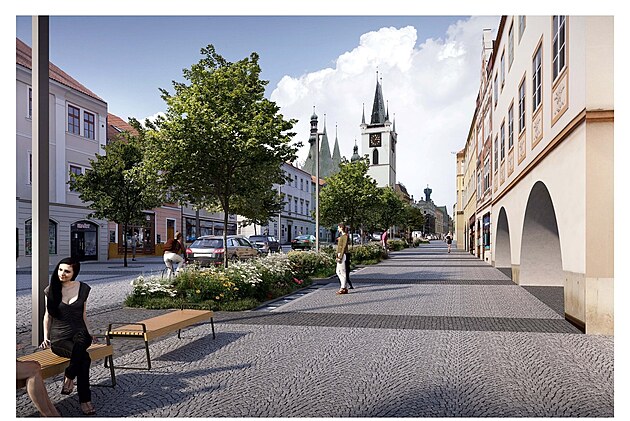 Takto by v budoucnu měla vypadat Dlouhá ulice v Litoměřicích. Autory urbanistické studie jsou Jiří Kugl a Štěpán Kotous.