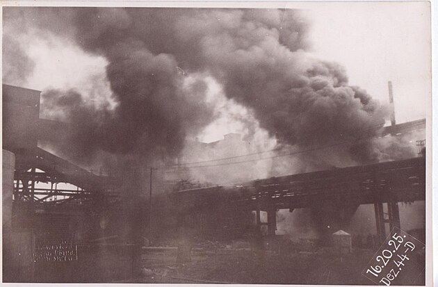 Fotografie pořízená po jednom z náletů na chemičku v Záluží v prosinci 1944
