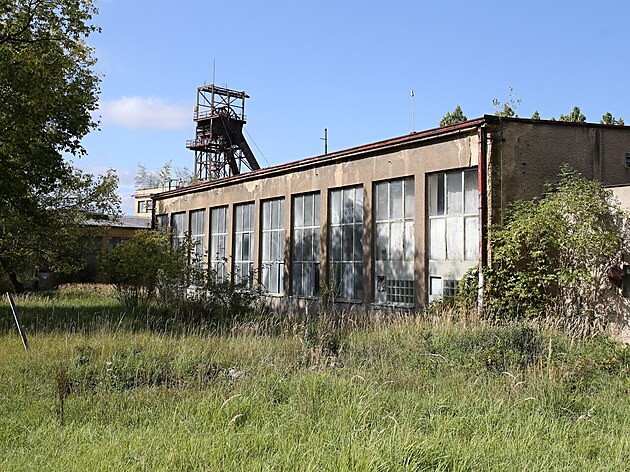 Areál bývalého hlubinného dolu Centrum na Mostecku. Těžní věž, která padne. (září 2025)