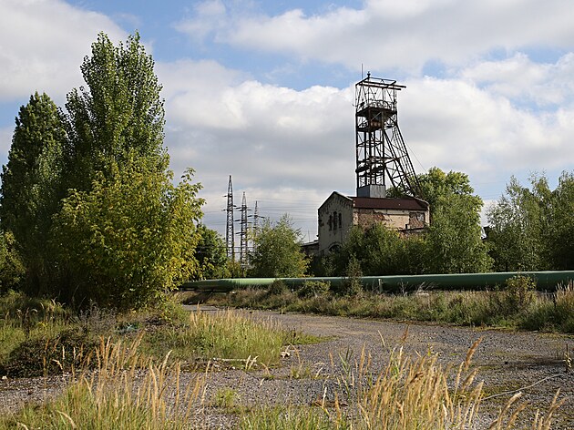 Areál bývalého hlubinného dolu Centrum na Mostecku. Těžní věž, která zůstane stát. (září 2025)