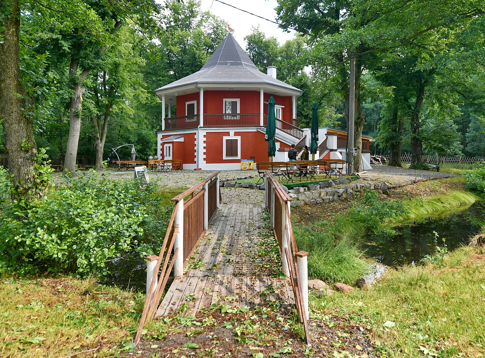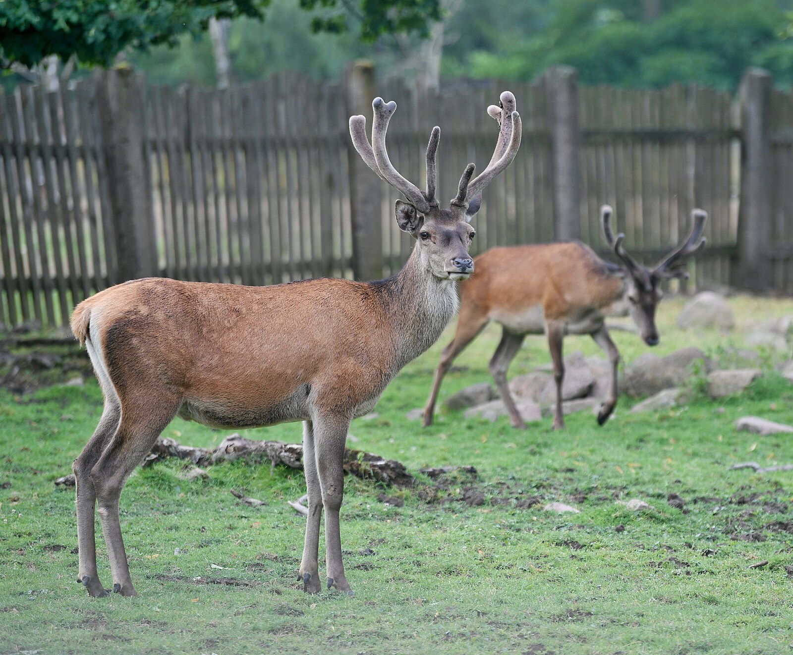V přilehlé oboře žije zhruba 40 kusů zvěře, například i jeleni.