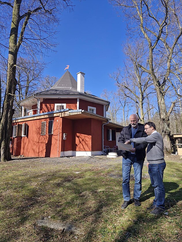 Exředitel pražské zoo Petr Fejk (vlevo) a starosta Dubí Jiří Kašpar debatují o budoucí podobě mstišovské obory.