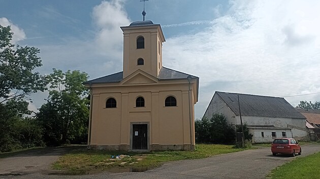 Bývalý evangelický kostel v Habřině nedaleko Úštěka má novou fasádu. (červenec 2025)