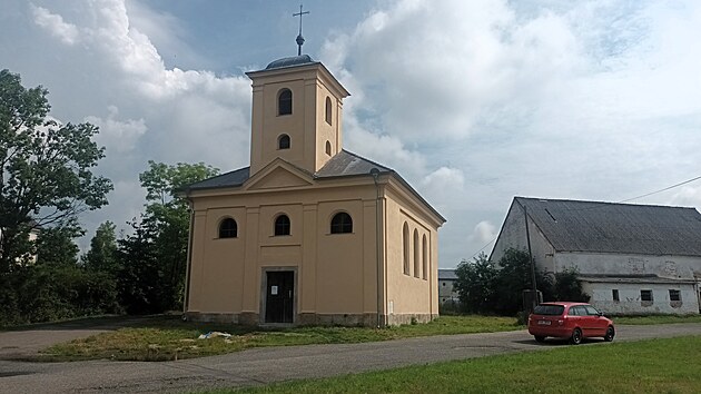 Bývalý evangelický kostel v Habřině nedaleko Úštěka má novou fasádu. (červenec 2025)