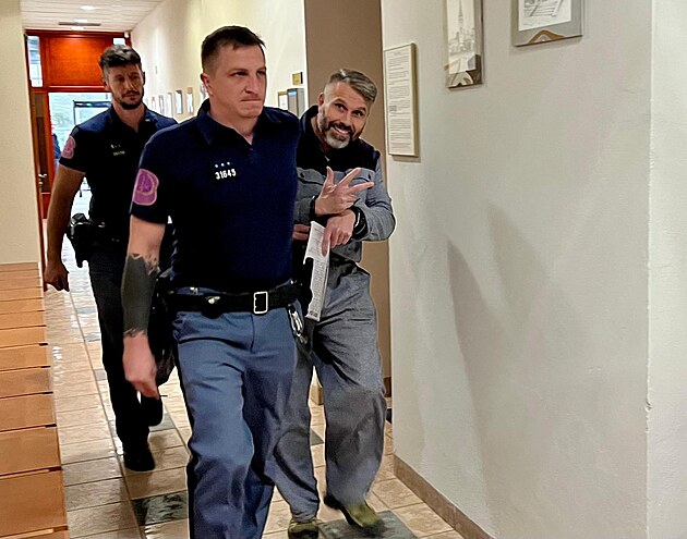 Petr Juráček na chodbě Okresního soudu v Chomutově (16. září 2025)