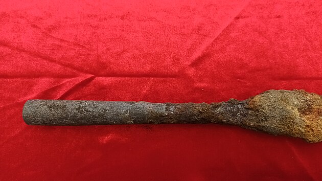 U Hrdel na Litoměřicku našli archeologové na 2 tisíce let starý hrob germánského bojovníka. Uvnitř objevili železnou dýku a kopí.
