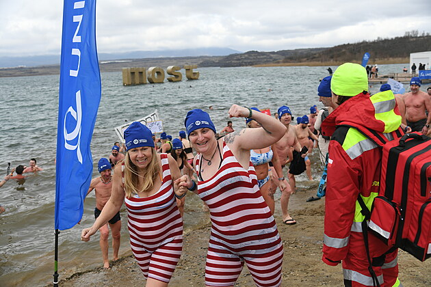 Otužilci se na jezeře Most zapsali do Guinnessovy knihy rekordů. Do vody jich vstoupilo ve stejný čas 2 461. Akci pořádal známý freediver, otužilec a rekordman David Vencl. (1. března 2025)