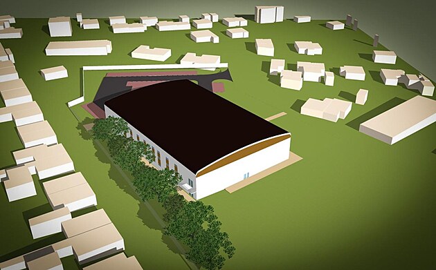 Vizualizace nové sportovní multifunkční haly v Jirkově.