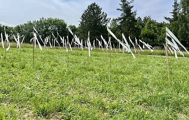 Instalace Tvar větru od Štěpána Dittrta. Čtvercová instalace je výsledkem snahy o propojení testuli, krajiny a větru. Divák může vítr nejen cítit a slyšet, ale i vidět.