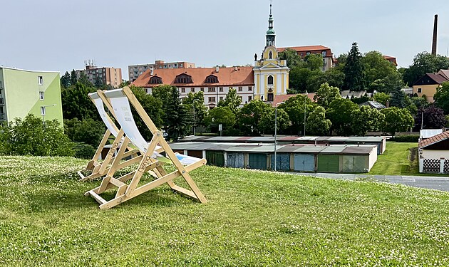 Obří lehátka jsou rozmístěna různě po Kadani.