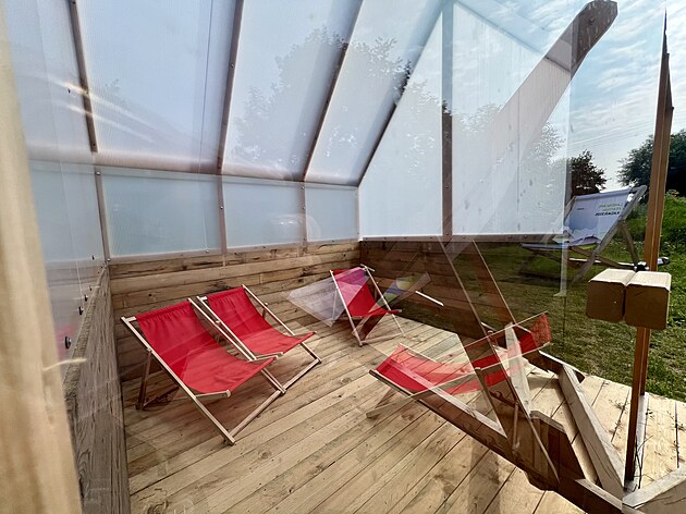 Rozpálený břeh od MÓD architekti. V parném létě dokáže řeka Ohře daleko víc. Instalace poskytne komfort převlékárny a slunečních říčních lázní.