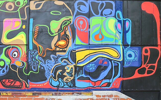Síň fantazie na zadní straně jedné z budov na sídlišti Na Podlesí. Autory jsou Chaozzline, Ilona Hájková.
