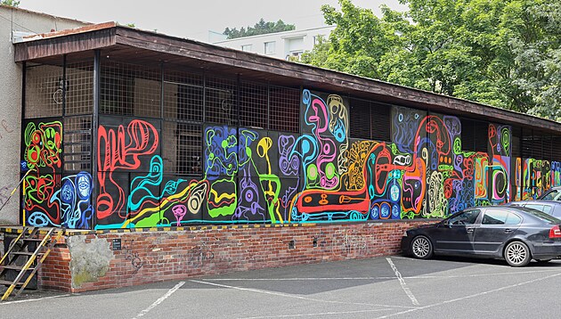 Síň fantazie na zadní straně jedné z budov na sídlišti Na Podlesí. Autory jsou Chaozzline, Ilona Hájková.