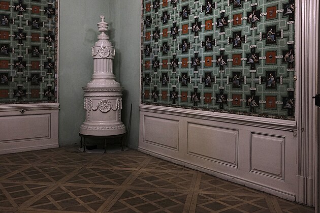 Interiéry zámku v Krásném Dvoře. Některé místnosti musely být vyřazeny z prohlídkového okruhu kvůli výskytu dřevomorky.