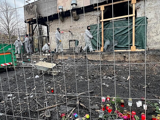 V mostecké restauraci U Kojota probíhá odklízení následků tragického požáru. (14. ledna 2025)
