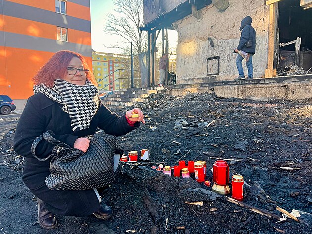Svíčku přišla před vyhořelou mosteckou restauraci zapálit i Jana Švihlíková. „Přítel mé dcery v podniku byl. Odešel o dvě hodiny dřív,“ řekla.