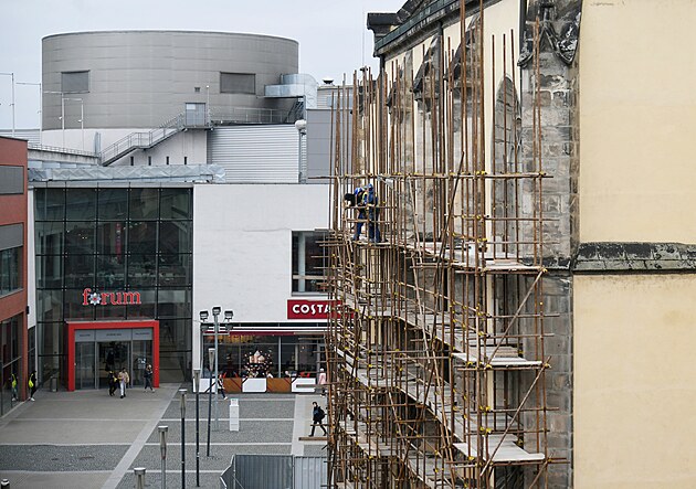 Fasádu kostela Nanebevzetí Panny Marie v Ústí nad Labem, který nejen obyvatelé krajského města znají také jako Šikmý kostel, čeká obnova. (18. října 2024)