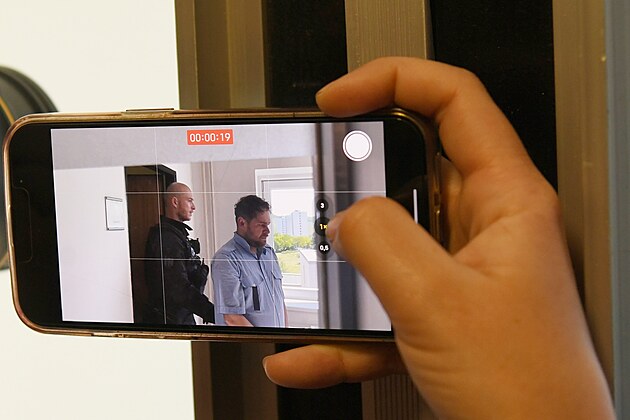Muž podezřelý z toho, že v Mostě při incidentu s jiným mužem nožem usmrtil chlapce v předškolním věku. Na snímku při odchodu z vazebního zasedání. (30. května 2023)