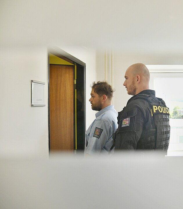 Muž podezřelý z toho, že v Mostě při incidentu s jiným mužem nožem usmrtil chlapce v předškolním věku. Na snímku při příchodu k vazebnímu zasedání. (30. května 2023)