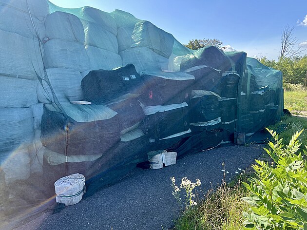 Nelegálně složený především plastový odpad v areálu bývalého cukrovaru v Lenešicích na Lounsku. (srpen 2025)