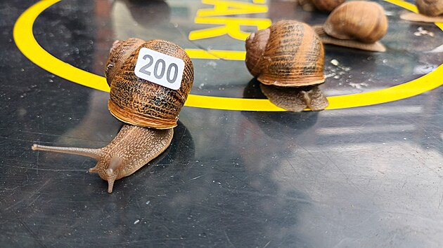 Letošní výstavu Tržnice Zahrady Čech oživí netradiční sportovní klání. V sobotu od 14 hodin proběhnou závody hlemýžďů zahradních. Závody probíhají na zvlhčené podložce, na které je vyznačeno několik soustředných kruhů. Šneci vyrazí od nejmenšího a jejich cílem je dorazit k obvodu kruhu největšího, který je vzdálen 33 centimetrů. Na fotografii je snímek ze středečního tréninku.