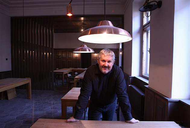 Vedoucí oddělení správy majetku litoměřického biskupství Richard Kirbs v restauraci nového minipivovaru U sv. Štěpána.
