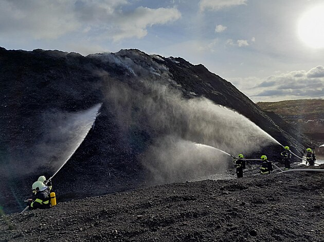 Na skládce Celio u Litvínova vypukl požár štěpky. (28. října 2025)