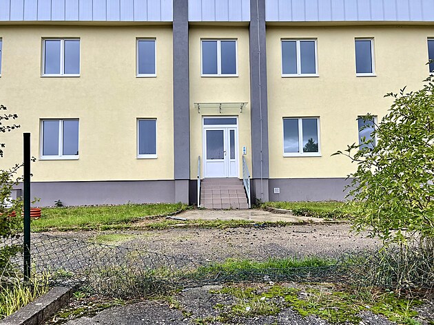 Objekt bývalé školky stojí vedle radnice v centru městečka Lom. Už je opravený. Město se rozhodlo vrátit státní dotaci. (říjen 2024)