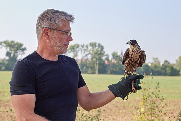 Louny nasazují v boji proti holubům sokoly. Ptáci musí projít speciálním výcvikem. Na vše dohlíží sokolník Jan Šimánek.