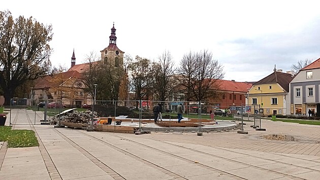 Na Václavském náměstí v Lovosicích, kde se koná řada kulturních akcí, buduje město nové pódium. (listopad 2024)