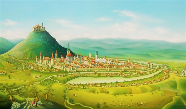 Vrcholem jeho dosavadní tvorby se stal obraz, jejž umělec dokončil nedávno. Zobrazuje někdejší podobu města i s nezbořeným hradem s původními domy, kostely a věžemi po roce 1600. Jako základ využil kresbu Jana Willenberga z roku 1602, ale použil i další historické zdroje včetně informací z map a archivů.