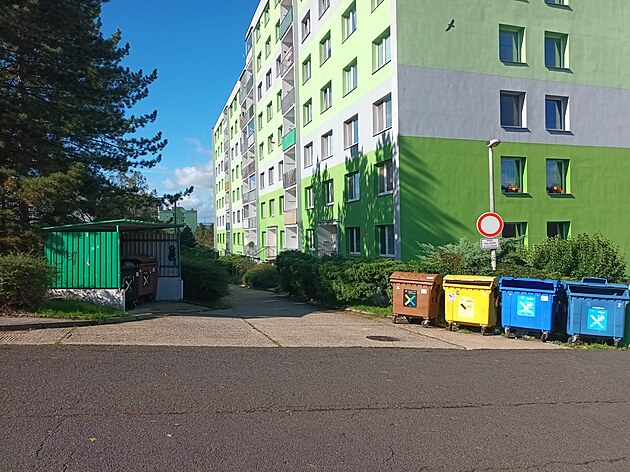 Na sídlišti Kamenný Vrch v ústecké čtvrti Střekov našli v kontejneru novorozence. (13. října 2024)