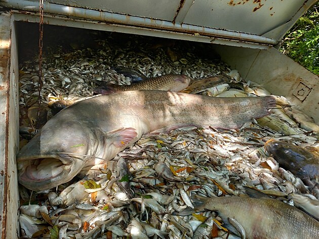 V Modlanské nádrži na Teplicku uhynuly tisíce ryb kvůli nedostatku kyslíku ve vodě, jakožto následku vysokých teplot. (29. června 2025)